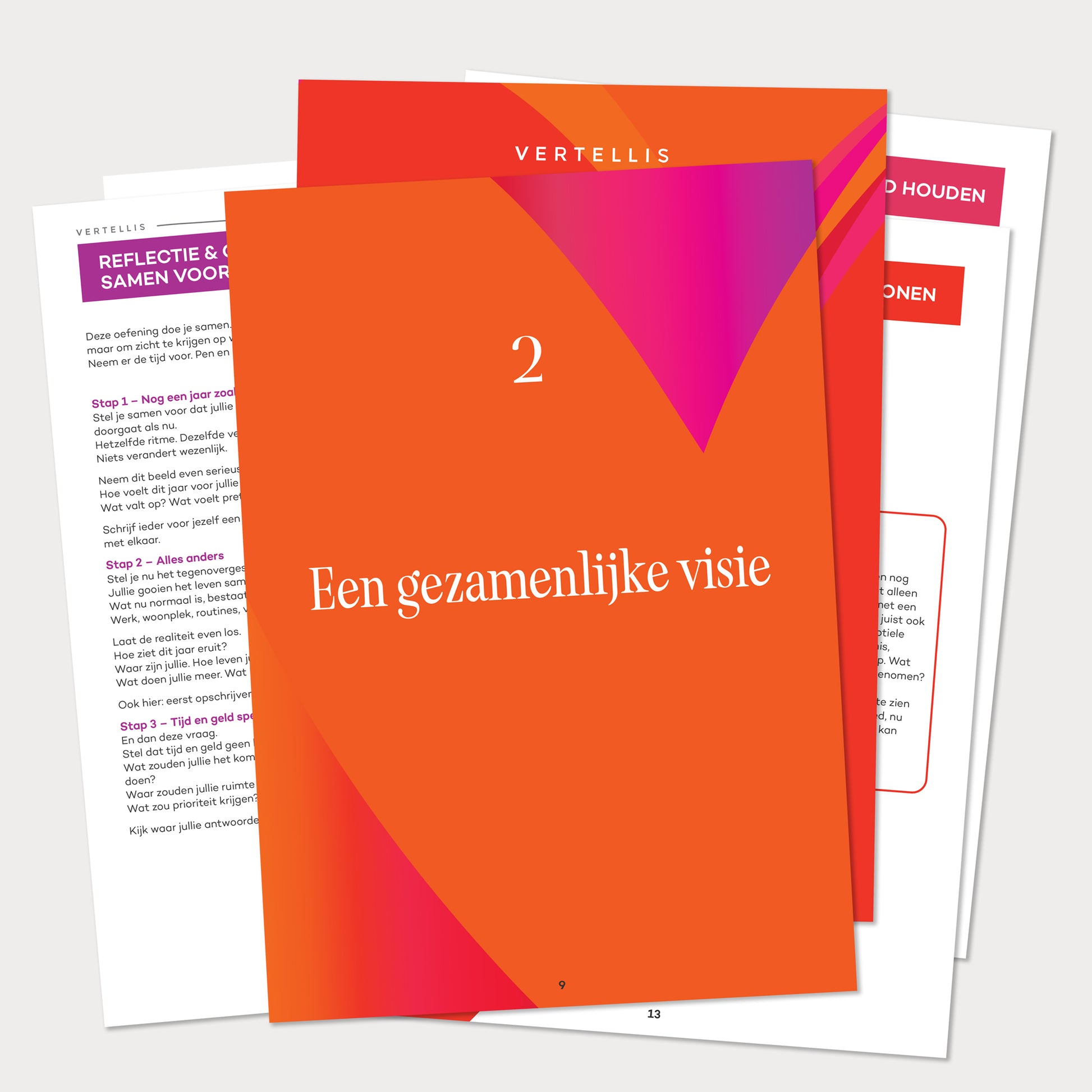 Niet nóg een theorie. Niet praten om het praten. Maar 15 bewezen oefeningen die jullie helpen om oude patronen te doorbreken, elkaar beter te begrijpen en samen bewust richting te kiezen voor de komende jaren.